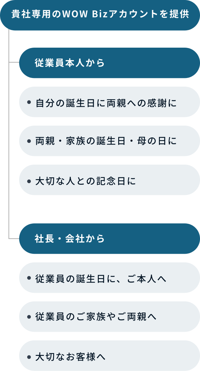 WOW Bizは従業員が毎年、大切な家族に“ありがとう”の気持ちを届けられる、