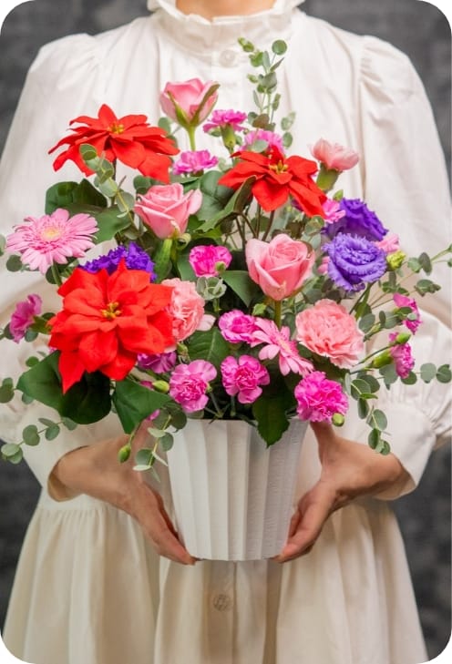 後日、母からお花の写真がLINEで届き、電話でありがとう。の言葉にこれまで感じていた母との心の距離がなんだか縮まった気がして涙が溢れました。色々な事があるけれど母への感謝がより深まる思いでした。自分では贈りにくいですが、会社が用意してくれた。という事も言い訳にできたのが良かった笑