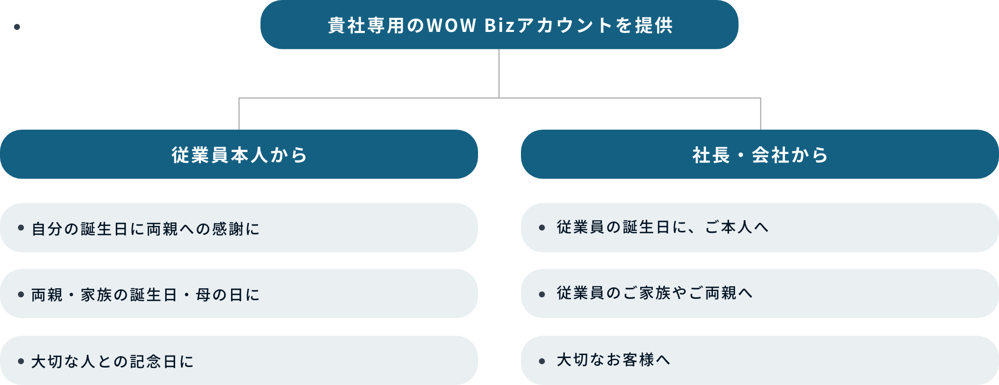 - 提携企業さま専用の WOW Bizアカウントをご用意します。